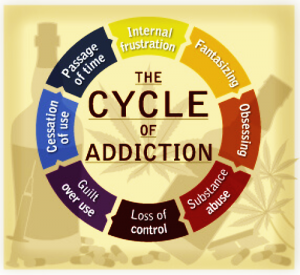 The addiction cycle is used to describe the stages a person experiences when caught in the grip of addiction.