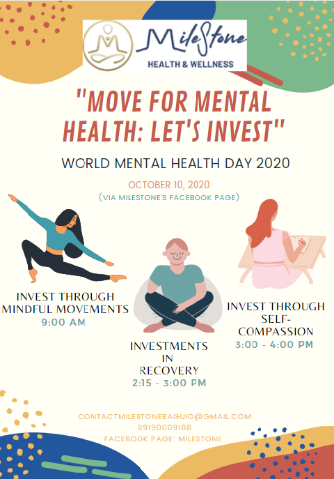 This week is Mental Health Awareness Week. Join Milestone Health and Wellness this Saturday, October 10, for a whole day dedicated to investing in ones mental health. We will be conducting live FB sessions throughout the day. We will hold a virtual yoga session at 9am, a Q&A discussion on recovery at 2:15pm, followed by a talk on self-compassion at 3pm. Join us in one or all of our activities 😊 Looking forward to seeing you there and stay tuned for more info!